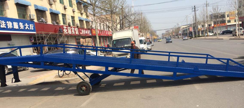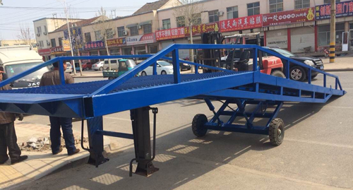 移動式登車橋與叉車配合使用的貨物裝卸輔助設(shè)備,可根據(jù)汽車車廂的高低調(diào)節(jié)高度,叉車可以直接通過本設(shè)備駛?cè)胲噹麅?nèi)部進(jìn)行貨物的批量裝卸,僅需單人作業(yè),即可實現(xiàn)貨物的快速裝卸。它使企業(yè)減少大量勞力,提高工作效率,獲取更大經(jīng)濟(jì)效益。